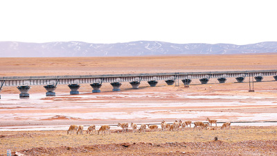 為保證藏羚羊繁衍遷徙順利進(jìn)行,青藏鐵路設(shè)置33處遷徙通道,青藏公路為藏羚羊遷徙采取臨時(shí)交通管制措施,青藏線沿線各保護(hù)站協(xié)助藏羚羊繁衍遷徙……在青藏線上,順利遷徙的藏羚羊群,展現(xiàn)著人與自然和諧共生的生動(dòng)畫(huà)面。