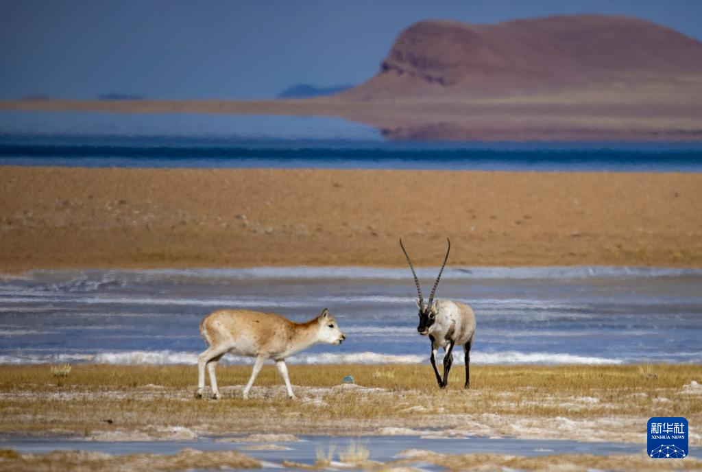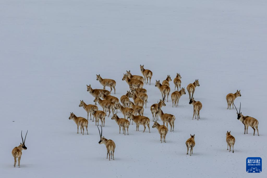 這是在色林錯(cuò)湖畔拍攝到的藏羚羊(1月5日攝)。 新華社記者 姜帆 攝