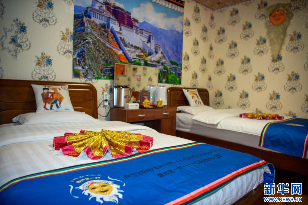 圖為扎西曲登社區(qū)一家民宿的藏戲主題客房(6月24日攝)。新華網(wǎng) 旦增努布 攝