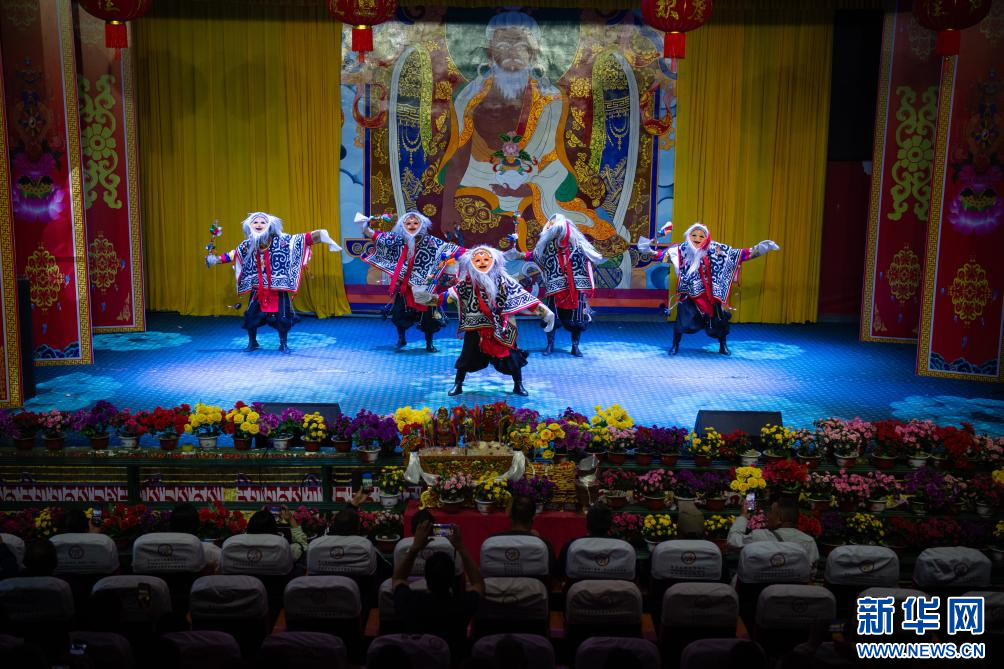 6月24日,群眾在國家級非物質(zhì)文化遺產(chǎn)雅礱扎西雪巴藏戲傳習(xí)基地表演傳統(tǒng)舞蹈節(jié)目。新華網(wǎng) 旦增努布 攝