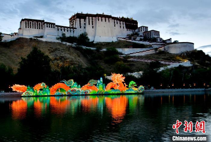 7月1日晚,布達拉宮腳下的宗角祿康公園“點亮拉薩—秦淮燈會”亮燈。燈會設(shè)17個點位、50個燈組,將持續(xù)至9月30日。圖為宗角祿康公園里的龍燈。中新社記者 李林 攝
