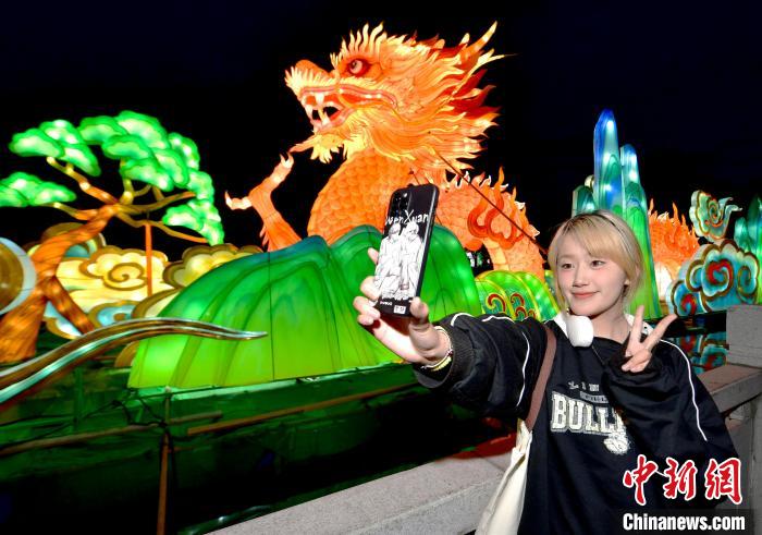 7月1日晚,布達拉宮腳下的宗角祿康公園“點亮拉薩—秦淮燈會”亮燈。燈會設(shè)17個點位、50個燈組,將持續(xù)至9月30日。圖為市民央金在燈會上拍照留念。中新社記者 李林 攝