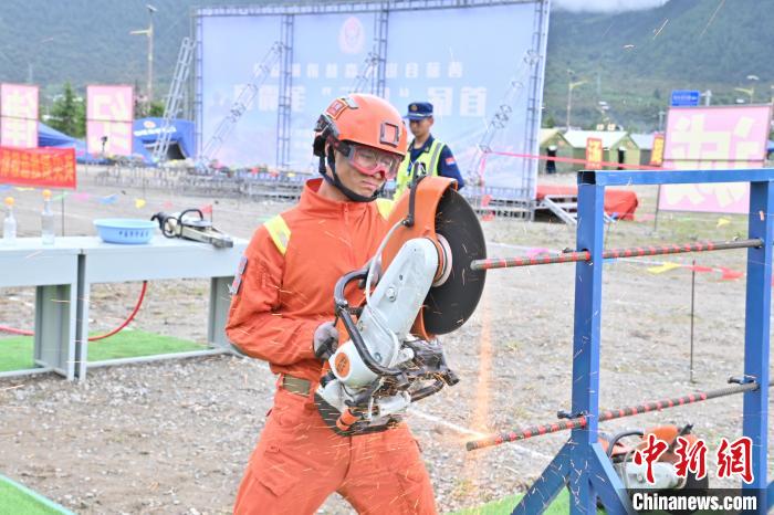 圖為地震救援專業(yè)“兵王”許沖正在操作內燃無齒鋸。西藏森林消防總隊供圖