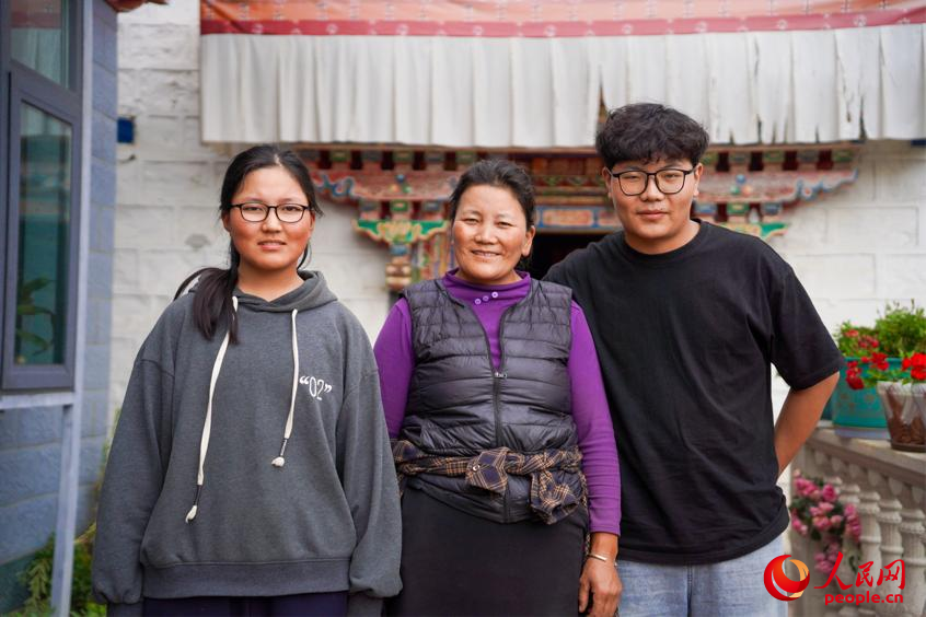 巴桑央宗、巴桑次仁和媽媽在自家院落。人民網(wǎng)記者 趙晨攝