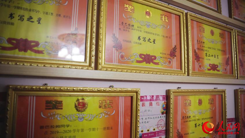 達(dá)瓦堅參家墻上的獎狀。人民網(wǎng)記者 趙晨攝