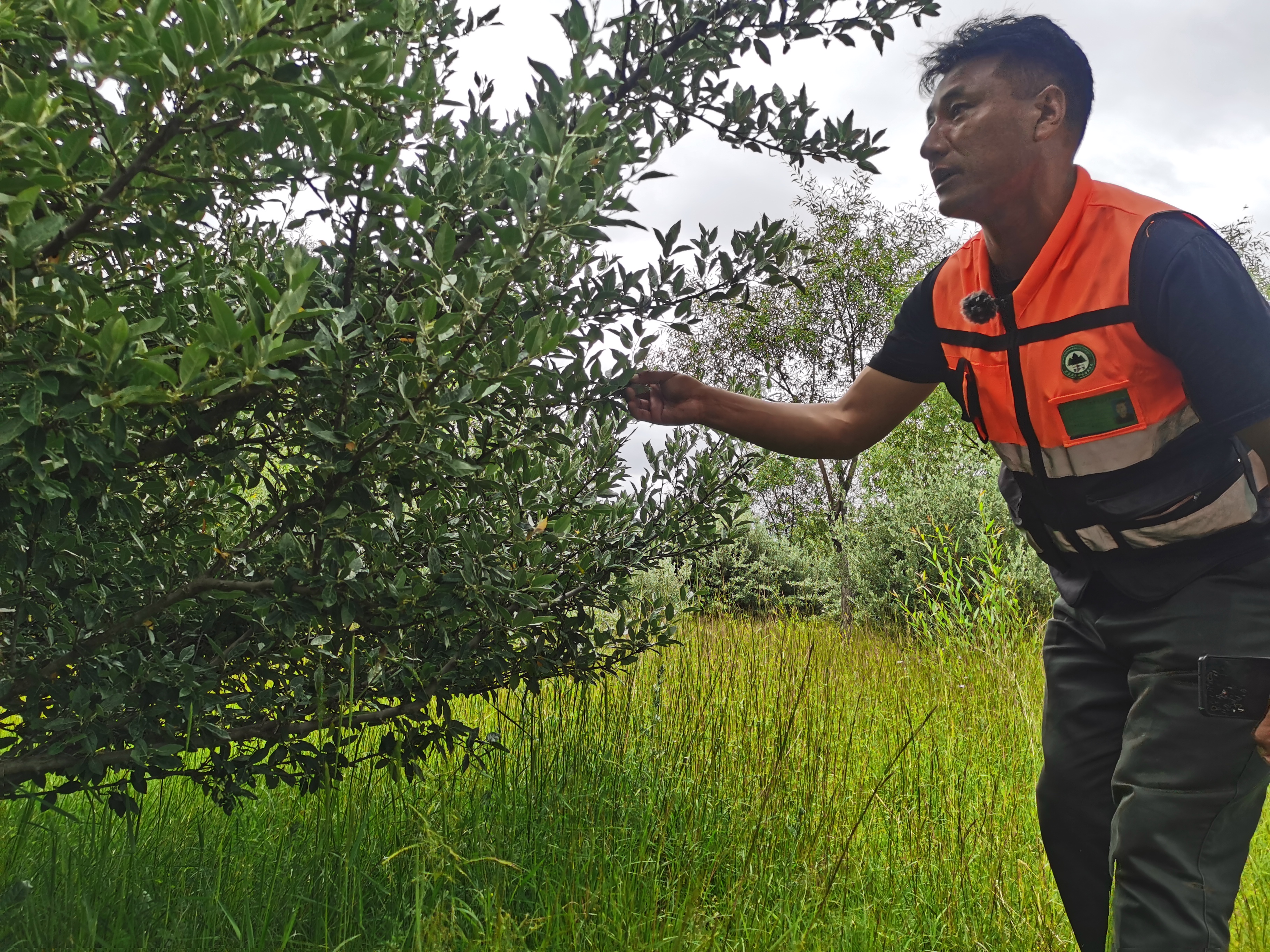 濕地管護員旺扎查看樹木生長情況 中國經(jīng)濟網(wǎng)記者魏金金/攝