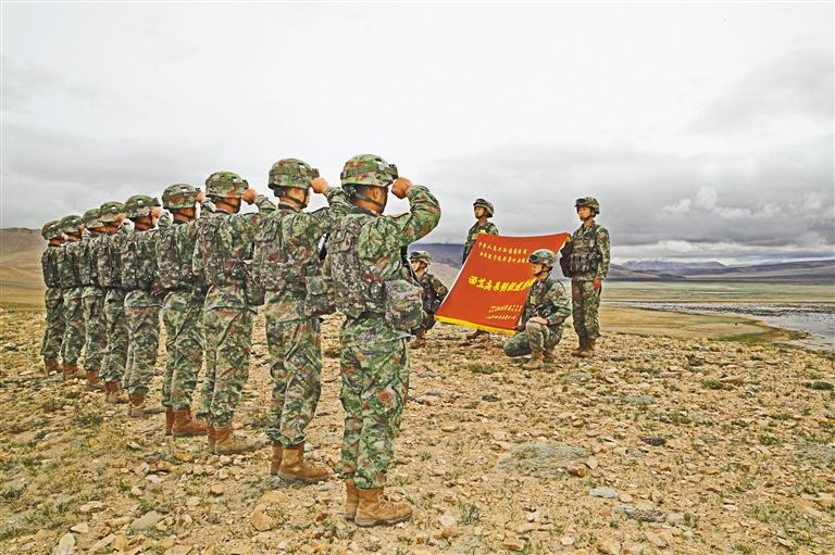 跟隨駐藏某部一連二班官兵的腳步,走進(jìn)海拔4300多米的野外駐訓(xùn)場,恰逢官兵組織“西藏高原鋼鐵運(yùn)輸班”授稱60周年宣誓。風(fēng)中的戰(zhàn)旗獵獵作響,鏗鏘的話語響徹云天:淬煉鋼鐵意志,鍛造赤膽忠誠,不畏艱難險(xiǎn)阻,時(shí)刻準(zhǔn)備戰(zhàn)斗……