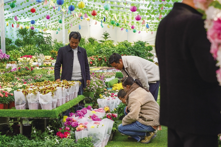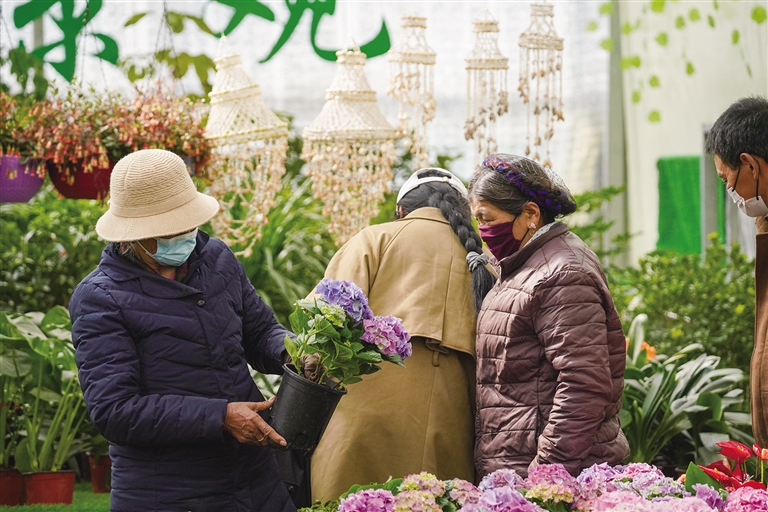 居民在花店內(nèi)購買鮮花。記者 阿旺尼瑪 攝