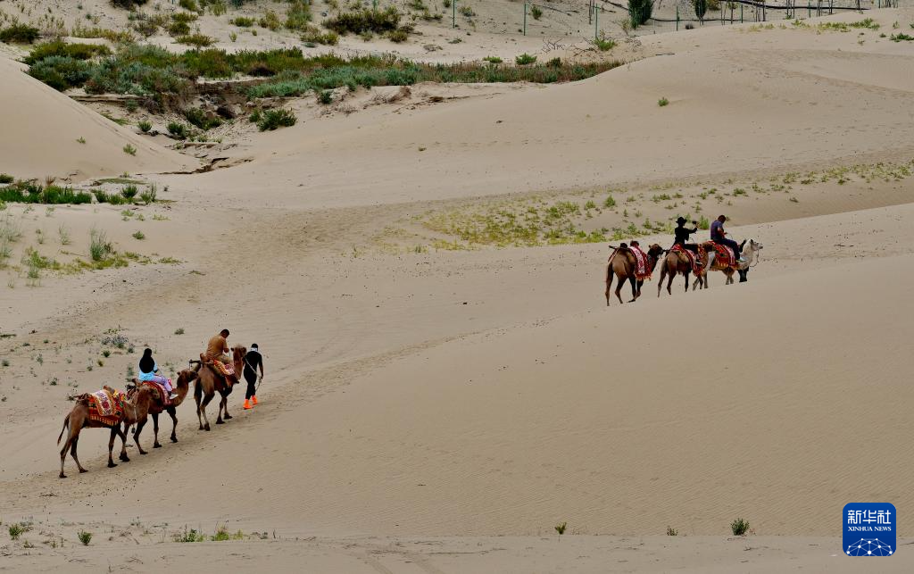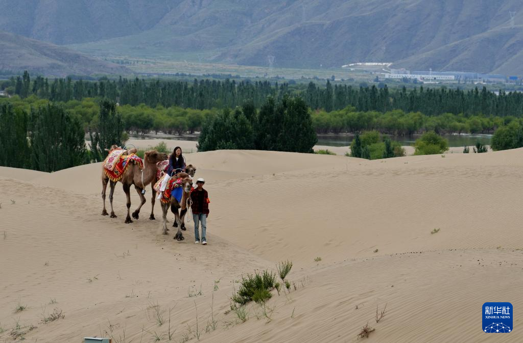 游客在扎囊國(guó)家沙漠公園里騎駱駝(7月30日攝)。新華社記者 張汝鋒 攝