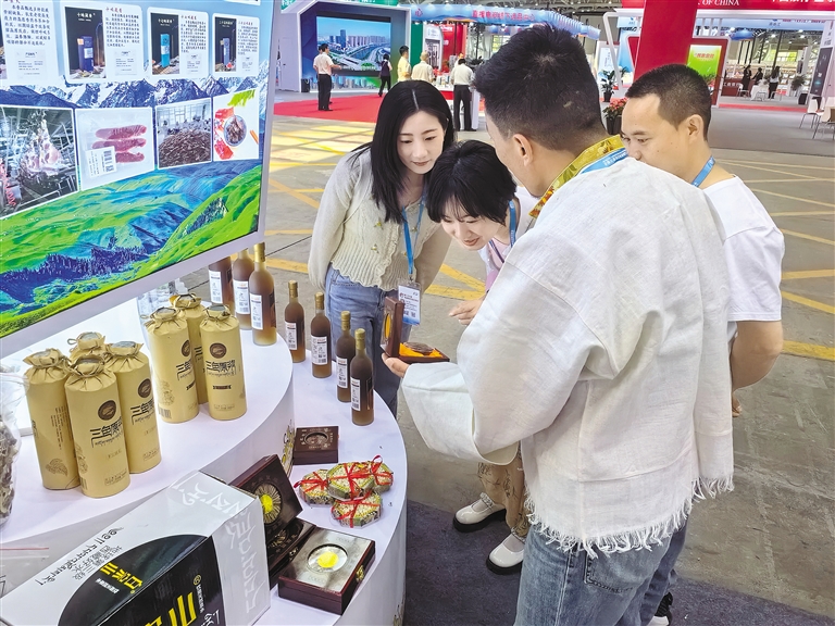 今年5月底,昌都市藍(lán)天圣潔農(nóng)業(yè)發(fā)展集團(tuán)有限公司選取藏香雞、葡萄酒、藏香、當(dāng)歸等300余種優(yōu)質(zhì)農(nóng)特產(chǎn)品走進(jìn)第六屆中國西部國際投資貿(mào)易洽談會,促成兩地8家企業(yè)現(xiàn)場簽署2300萬元產(chǎn)銷合作協(xié)議。