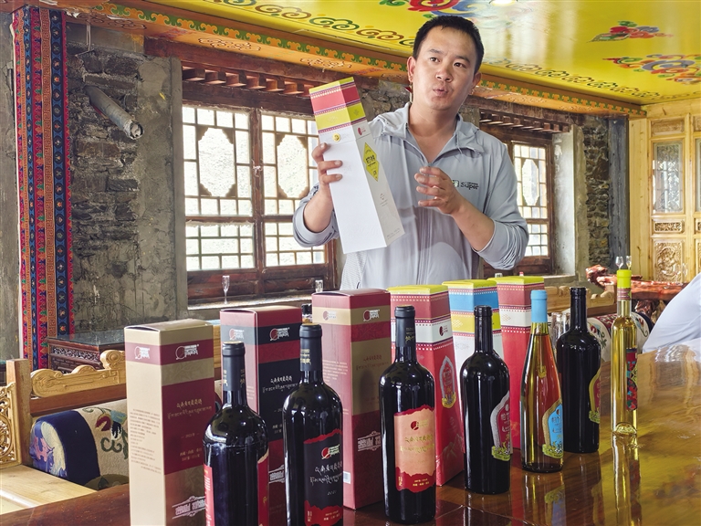 帕竹酒莊負(fù)責(zé)人介紹各類(lèi)品種的葡萄酒。