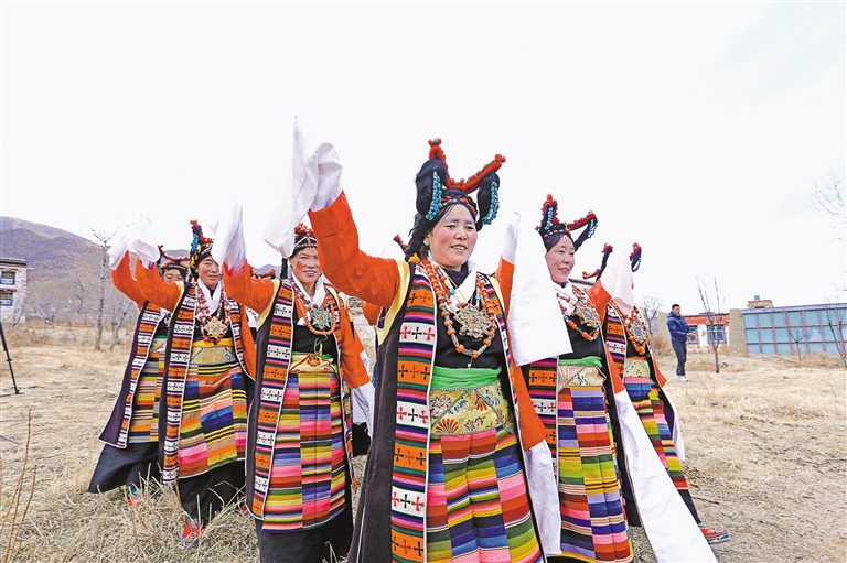 “如今,這支隊伍已發(fā)展到20多名成員,都是當(dāng)?shù)厝罕?。藝術(shù)隊經(jīng)常受邀參加各種大小晚會、重要節(jié)日演出和赴區(qū)內(nèi)外非遺展演等,其影響力和傳播力不斷提升,特別是甲瑪諧欽《和親路》受到廣泛歡迎?!奔赚斷l(xiāng)工作人員德吉卓嘎說。