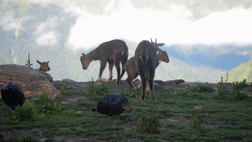 清晨,喜馬拉雅斑羚、棕尾虹雉、珠頸斑鳩等各類動(dòng)物出現(xiàn)在山間的一處平臺(tái)上,吸引周邊的游人欣賞這自然之美。