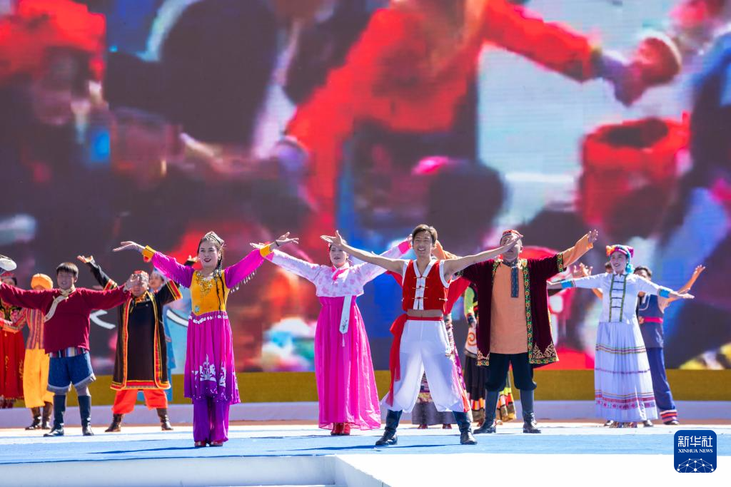 8月19日,演員在第十屆三江茶馬文化藝術(shù)節(jié)開幕式上跳起傳統(tǒng)舞蹈。新華社記者 旦增尼瑪曲珠 攝