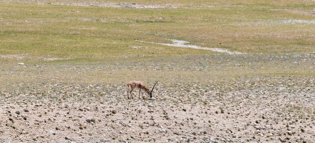 8月24日,一只公藏羚羊在雅魯藏布江源頭附近的草地上覓食。新華社記者 丁增尼達(dá) 攝