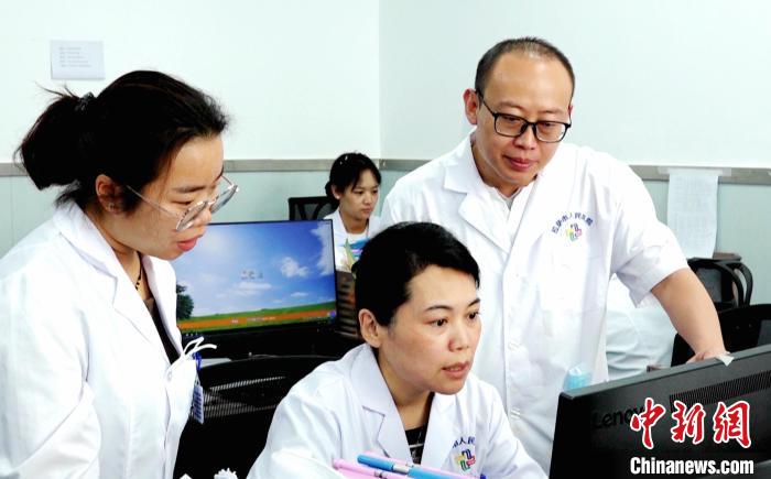 圖為醫(yī)生馮祥(右二)和同事們?cè)诓榉?。趙朗 攝