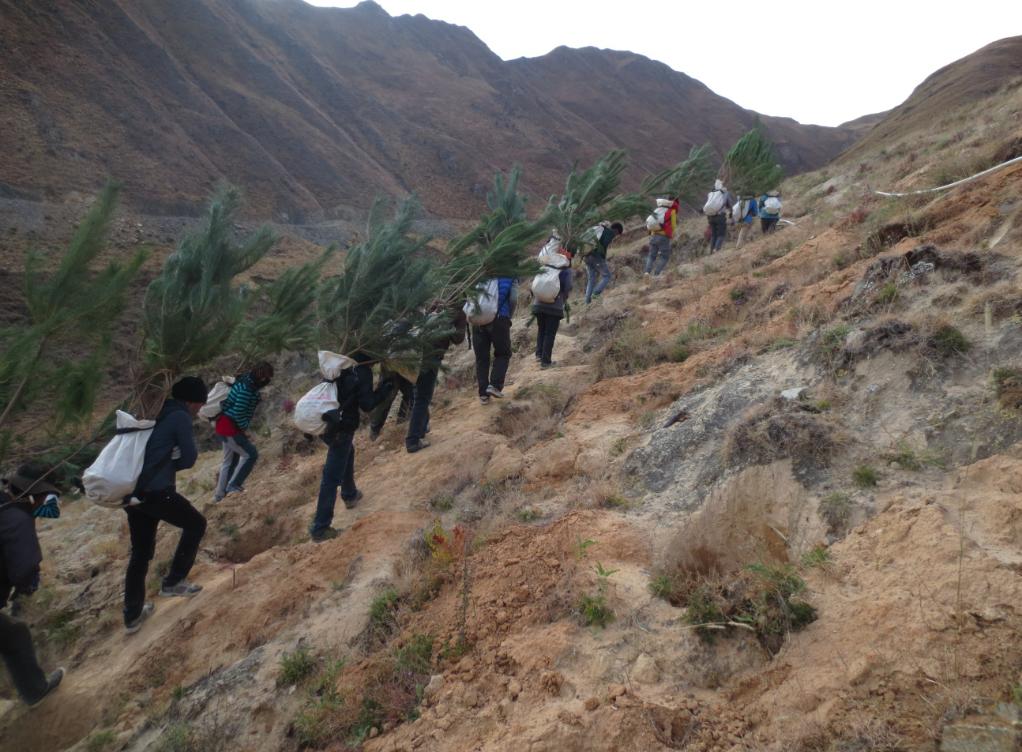 南山海拔在3600米至4050米間,平均坡度達60度,山體大部分區(qū)域土層瘠薄,石礫含量高達60%至70%。植樹難、成活難、管護難,是造林綠化的“攔路虎”。