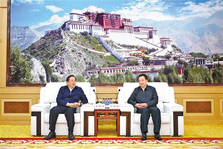 王君正代表自治區(qū)黨委、政府對湖北省黨政代表團(tuán)來藏考察表示歡迎。他說,在深入貫徹落實(shí)黨的二十屆三中全會和第四次對口支援西藏工作會議精神之際,湖北省黨政代表團(tuán)來藏考察、推進(jìn)援藏工作,充分體現(xiàn)了湖北省委、省政府貫徹落實(shí)習(xí)近平總書記關(guān)于西藏工作的重要指示和新時(shí)代黨的治藏方略的自覺性和堅(jiān)定性、責(zé)任感和使命感。湖北作為中部大省,近年來深入貫徹落實(shí)習(xí)近平總書記關(guān)于湖北工作的重要講話、重要指示批示精神和黨中央決策部署,圍繞“五個(gè)功能定位”,推動經(jīng)濟(jì)社會快速發(fā)展,為中國式現(xiàn)代化建設(shè)作出了積極貢獻(xiàn)。西藏工作在黨和國家工作大局中具有十分重要的戰(zhàn)略地位。自治區(qū)黨委不折不扣貫徹落實(shí)習(xí)近平總書記為西藏明確的“穩(wěn)定、發(fā)展、生態(tài)、強(qiáng)邊”四件大事,推動各項(xiàng)事業(yè)不斷取得新成效,呈現(xiàn)出一派欣欣向榮的良好景象。今年是全國對口支援西藏30周年,30年來湖北省委、省政府始終站在黨和國家戰(zhàn)略全局的高度,認(rèn)真貫徹落實(shí)黨中央關(guān)于援藏工作的決策部署,緊扣受援地需求推進(jìn)各項(xiàng)工作落地落實(shí),為西藏長治久安和高質(zhì)量發(fā)展作出了積極貢獻(xiàn),西藏各族人民感恩在心。當(dāng)前,西藏正處于建設(shè)社會主義現(xiàn)代化的關(guān)鍵時(shí)期,希望兩省區(qū)完整準(zhǔn)確全面貫徹新時(shí)代黨的治藏方略,錨定在國家全局中的戰(zhàn)略地位,勇?lián)姑?、團(tuán)結(jié)奮斗,攜手為強(qiáng)國復(fù)興偉業(yè)作出更大貢獻(xiàn)。深化交流合作,加強(qiáng)發(fā)展戰(zhàn)略對接,強(qiáng)化特色優(yōu)勢產(chǎn)業(yè)融合發(fā)展,揚(yáng)長避短、優(yōu)勢互補(bǔ),推動兩地人民共同富裕。堅(jiān)持以鑄牢中華民族共同體意識為主線,進(jìn)一步推動對口支援工作走深走實(shí),鞏固教育、醫(yī)療等“組團(tuán)式”援藏成果,激勵(lì)更多優(yōu)秀干部人才參與社會主義現(xiàn)代化新西藏建設(shè)。