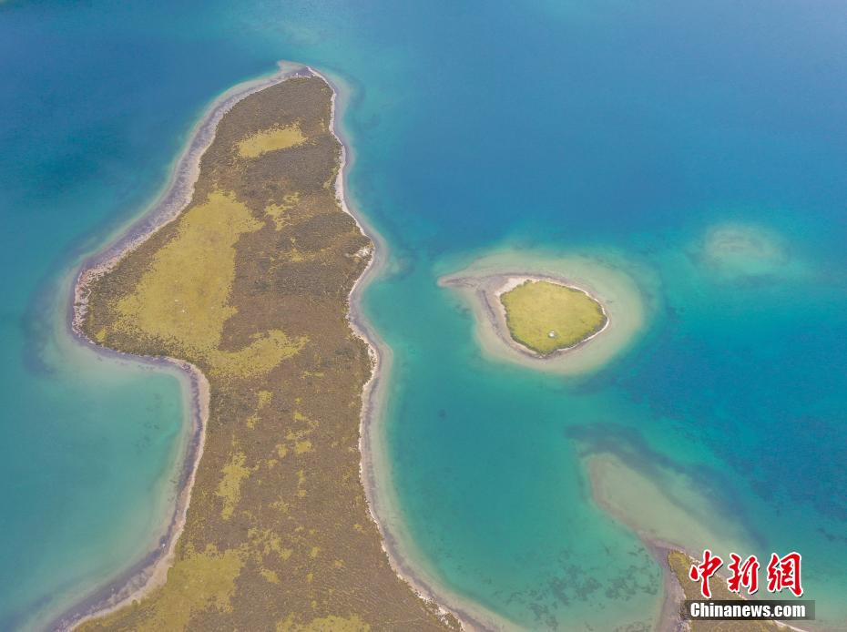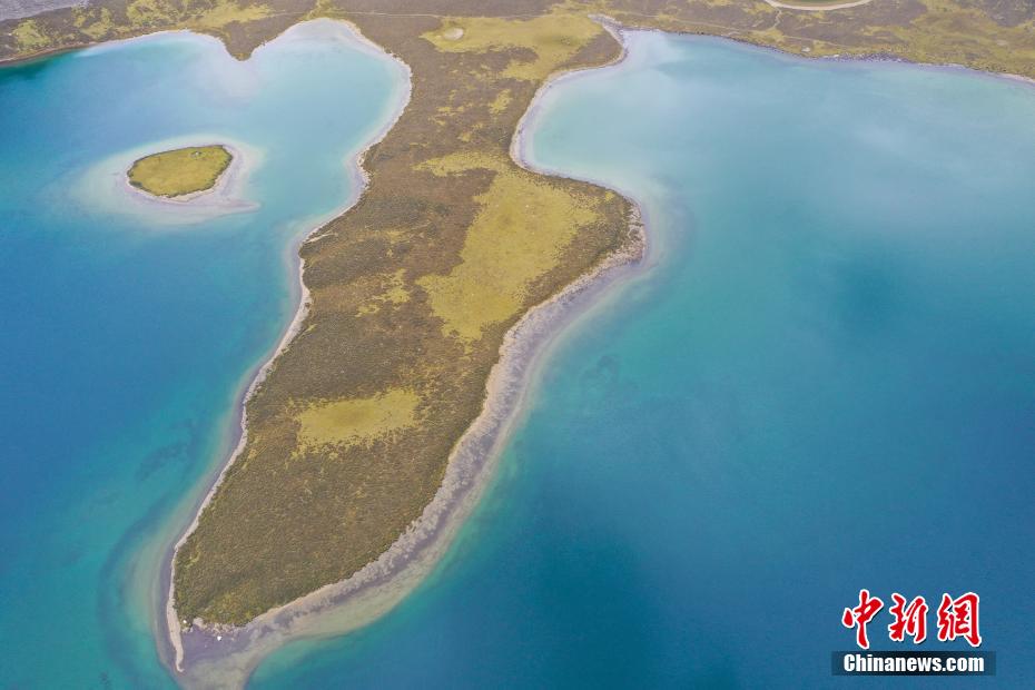 9月6日,思金拉措景區(qū)風(fēng)光秀麗。思金拉措湖位于西藏拉薩市墨竹工卡縣,海拔4500米,湖邊群山高聳、草甸金黃。從空中俯瞰,思金拉措湖心島如同“黃金右腳”踢球。圖為思金拉措湖心島。(無人機(jī)照片)