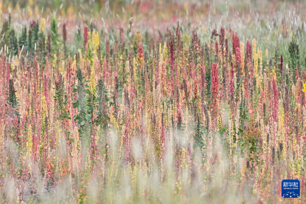 這是在西藏日喀則市薩迦縣扯休鄉(xiāng)拍攝的當(dāng)?shù)胤N植的藜麥(9月4日攝)。新華社記者 孫瑞博 攝
