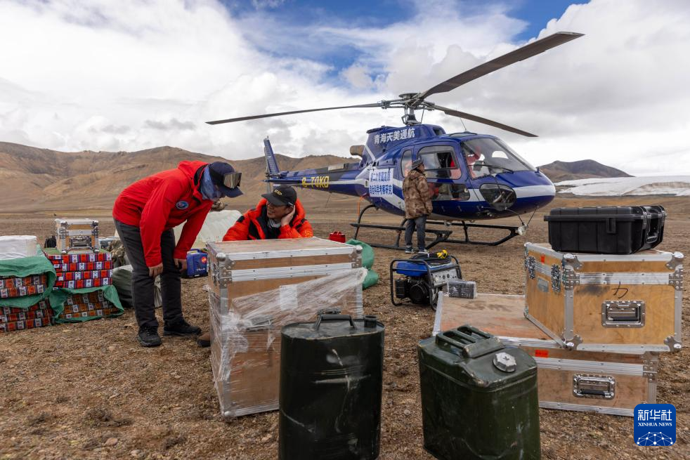 9月9日,直升機將科考物資從海拔5400米的第二次青藏科考普若崗日冰原大本營運往海拔6100米的“Dome.C”點。新華社記者 姜帆 攝