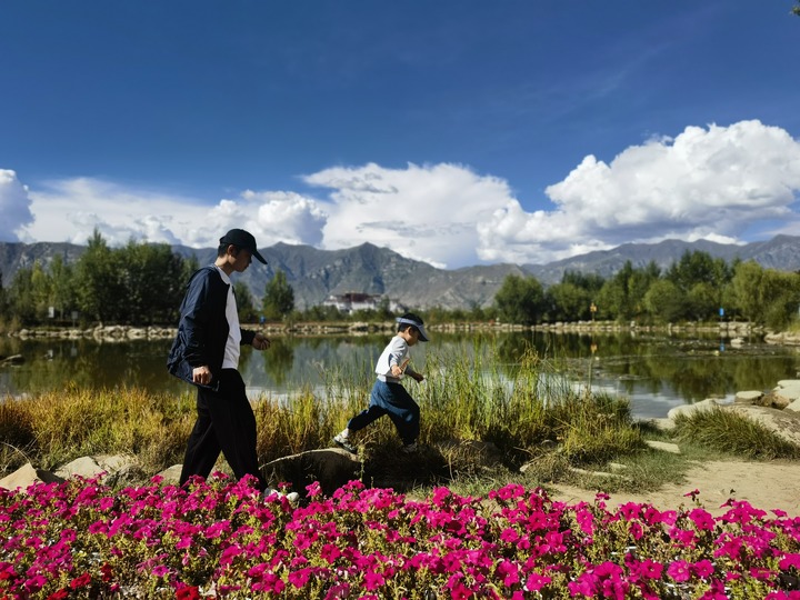 2024年9月1日,游客在拉薩南山公園游玩。新華社記者舒靜 攝