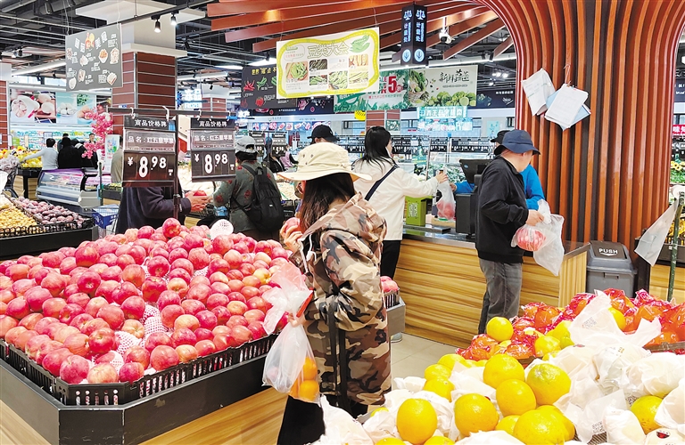 近日,拉薩市民在琳瑯滿(mǎn)目的超市食品區(qū)選購(gòu)蔬果。記者 旦增蘭澤 攝