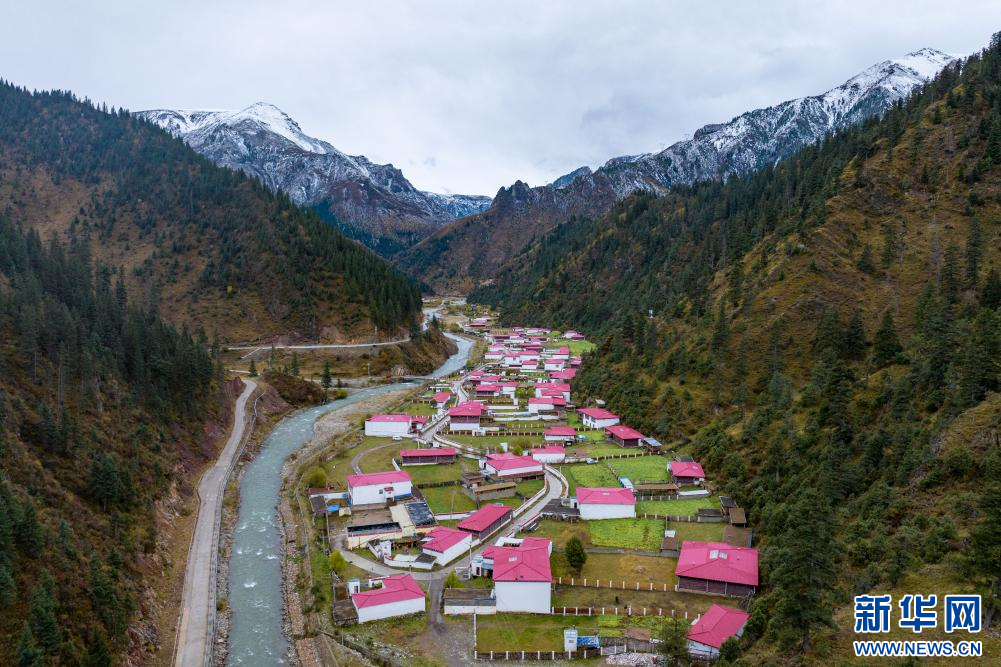 10月21日拍攝的“西藏解放第一村”昌都市江達(dá)縣崗?fù)写宀厥綐欠浚o人機(jī)照片)。新華網(wǎng) 旦增努布 攝