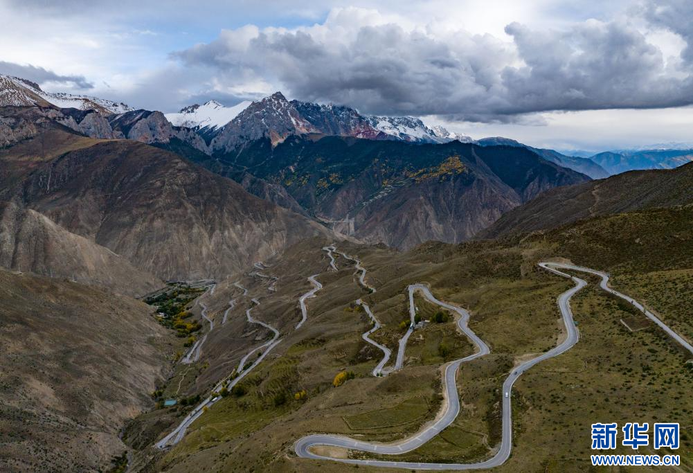 10月13日拍攝的川藏公路“怒江72拐”(無人機(jī)照片)。新華網(wǎng) 旦增努布 攝