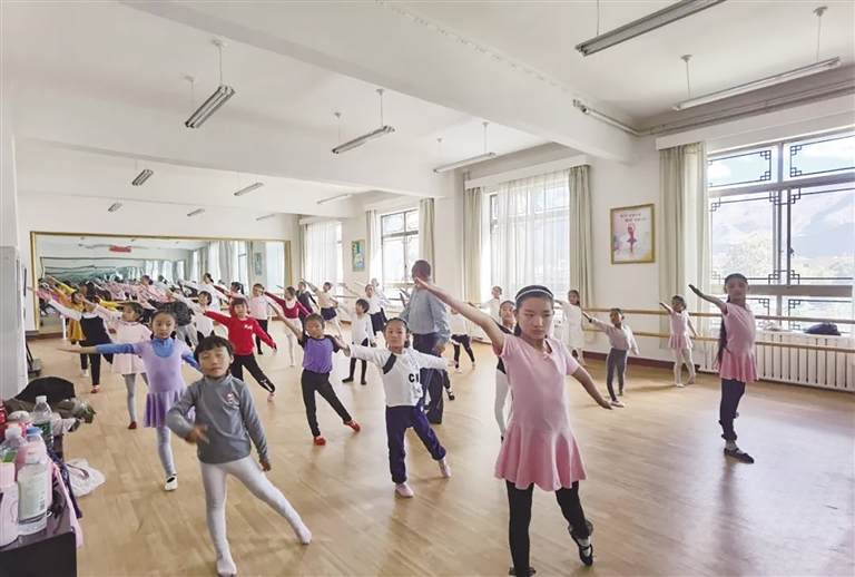 學(xué)生在上民族舞課?!D由拉薩市青少年師范綜合實踐基地提供