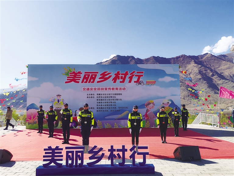 為全面提升農(nóng)牧區(qū)群眾交通安全意識、法治意識、文明意識,全力防范涉農(nóng)道路交通事故、保障農(nóng)牧區(qū)廣大群眾生命財產(chǎn)安全和出行安全,近日,由自治區(qū)公安廳交通管理局主辦,拉薩市公安局交警支隊、堆龍德慶公安分局交警大隊、當雄縣公安局交警大隊、尼木縣公安局交警大隊承辦的“美麗鄉(xiāng)村行”交通安全巡回宣傳教育活動在堆龍德慶區(qū)古榮鎮(zhèn)加入村榮瑪搬遷點舉行。
