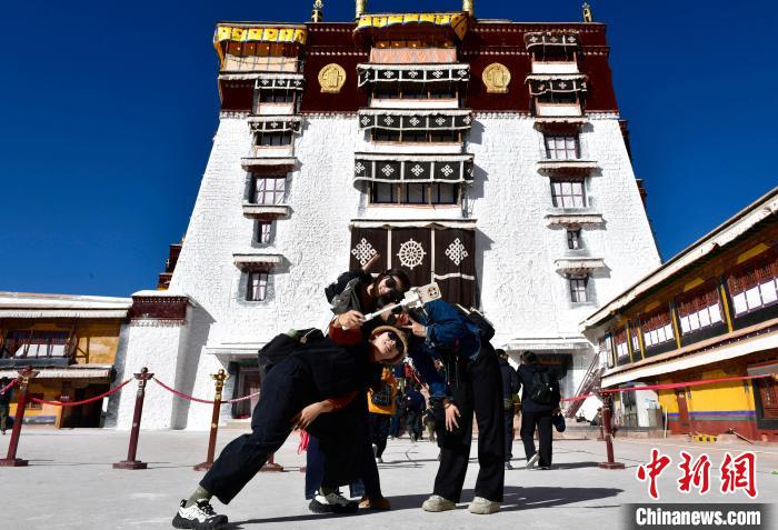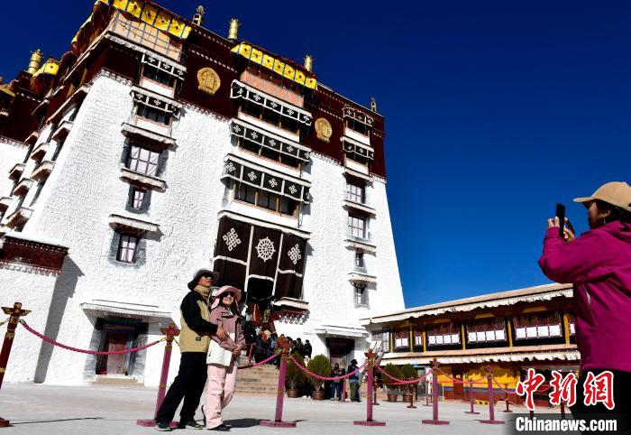 圖為11月1日,來自四川的信眾在布達(dá)拉宮拍照留念。中新社記者 李林 攝