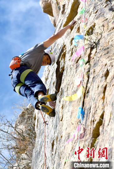 11月17日,2024年西藏自治區(qū)攀巖自然巖壁公開(kāi)賽決賽在拉薩市城關(guān)區(qū)奪底街道吉倉(cāng)自然巖壁場(chǎng)地舉行。本次賽事共有來(lái)自全國(guó)的55名選手參賽,分預(yù)賽和決賽兩輪。圖為參賽選手劉亞豪決賽中。中新社記者 李林 攝