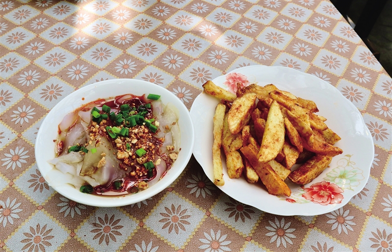 除了真實(shí)而美好的環(huán)境,涼粉店當(dāng)然以涼粉為主打??ú翛龇鄣甑臎龇蹆r(jià)格親民,Q彈爽滑的涼粉配上店家特制的辣椒,再撒上一層花生碎,看似簡(jiǎn)單口感卻層次豐富,讓人回味無(wú)窮。除了涼粉,卡擦涼粉店還供應(yīng)炸土豆、涼面等具有代表性的拉薩小吃。嗦粉吃面的同時(shí),能真正感受到日光之城的溫暖和花朵的治愈,這樣的美好體驗(yàn)可能就在你身旁的小店中。