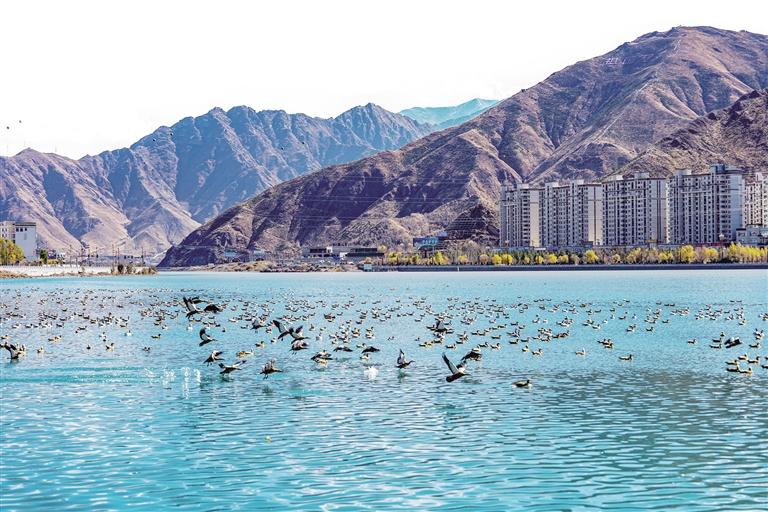 11月22日,記者來(lái)到拉薩市濱河公園和拉薩大橋,發(fā)現(xiàn)已有眾多候鳥(niǎo)陸續(xù)抵達(dá)拉薩,鳥(niǎo)類(lèi)數(shù)量顯著增多。遠(yuǎn)處的雪山巍峨靜謐,拉薩河靜靜流淌,而靈動(dòng)的候鳥(niǎo)為這番景色增添了無(wú)限的生機(jī)與活力,一幅山水靜好、飛鳥(niǎo)翔集的美麗生態(tài)畫(huà)卷在眼前展開(kāi)。