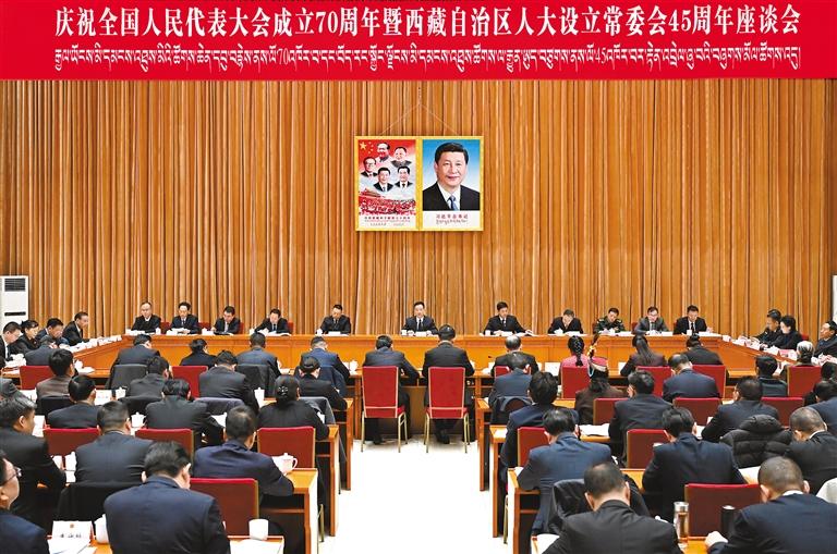 11月25日,西藏自治區(qū)召開慶祝全國人民代表大會(huì)成立70周年暨西藏自治區(qū)人大設(shè)立常委會(huì)45周年座談會(huì)。自治區(qū)黨委書記王君正出席并講話。 本報(bào)記者 李洲 攝