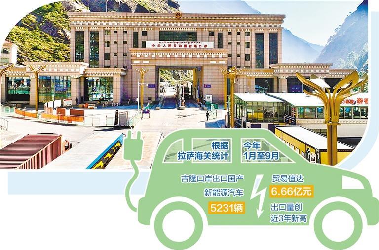 在位于日喀則市的吉隆口岸,裝載著一輛輛國產新能源汽車的大卡車正緩緩駛出國門,駛向尼泊爾。今年以來,新能源汽車出口形勢良好,貿易值屢創(chuàng)新高,成為西藏外貿新的增長點。根據(jù)拉薩海關統(tǒng)計,今年1月至9月,吉隆口岸出口國產新能源汽車5231輛,貿易值達6.66億元,出口量創(chuàng)近3年新高。