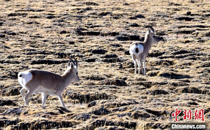 圖為12月5日,西藏那曲市申扎縣境內拍攝到的中國國家一級保護動物藏羚羊。中新社記者 李林 攝
