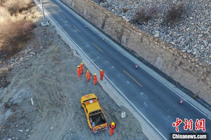 12月16日,西藏自治區(qū)林芝公路事業(yè)發(fā)展和應(yīng)急保障中心(工布江達(dá)養(yǎng)護(hù)段)道路養(yǎng)護(hù)工人及時清除川藏公路上的落石,保障道路暢通。該養(yǎng)護(hù)段擔(dān)負(fù)著川藏公路沿線工布江達(dá)縣路段的養(yǎng)護(hù)管理、應(yīng)急搶險等工作,包括路面修補(bǔ)、清理邊溝、維護(hù)交通安全設(shè)施等日常養(yǎng)護(hù)工作。圖為道路養(yǎng)護(hù)工人在公路上巡護(hù)。(無人機(jī)照片)中新社記者 貢嘎來松 攝