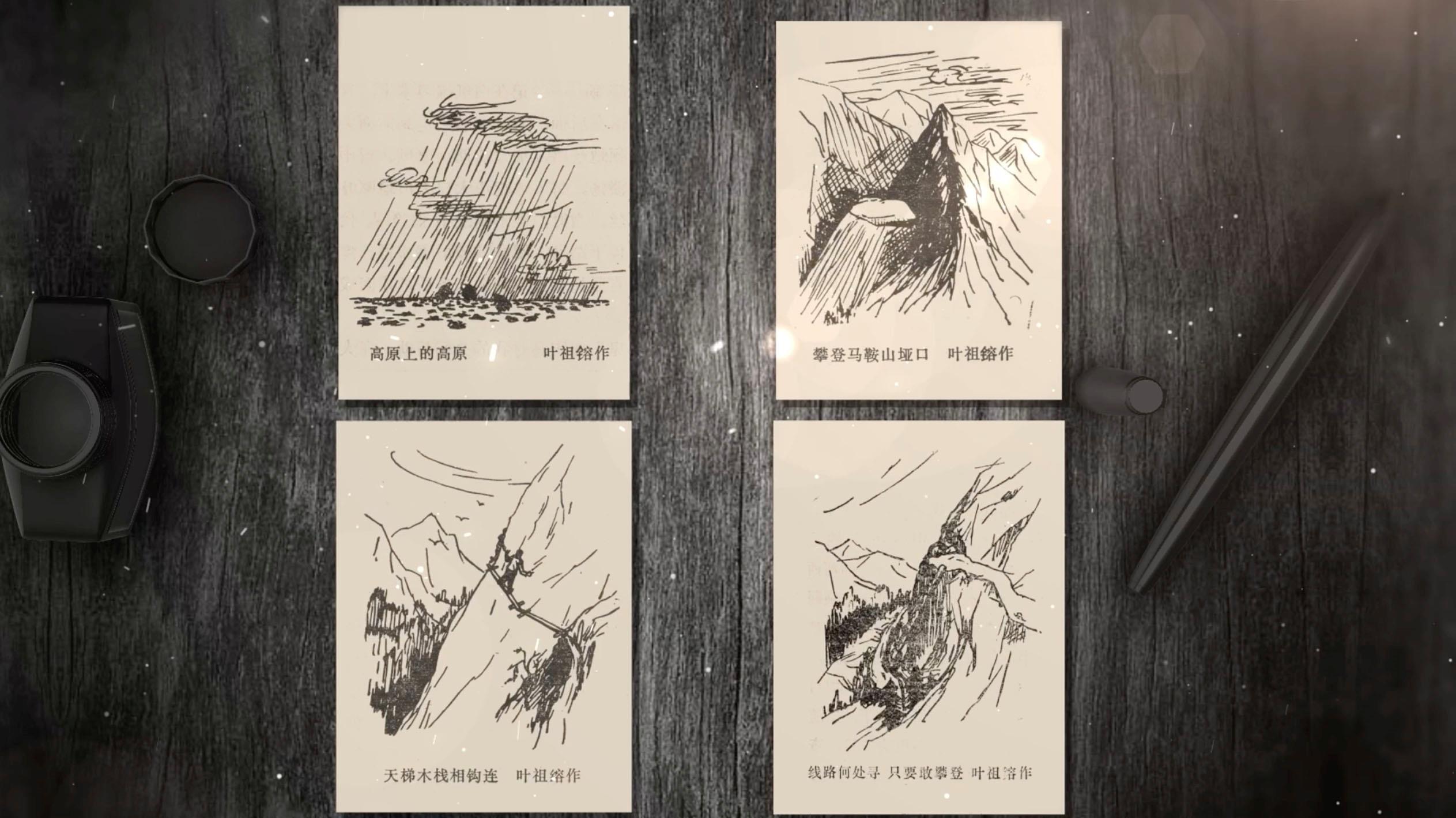 畫稿的作者是葉祖镕。他是踏勘隊中負責地形圖測繪的成員。在隊長余炯帶領下,深入無人區(qū)進行勘測,與筑路大軍幾近失聯數月,但最終冒著生命危險帶回了寶貴的勘測報告。這是葉祖镕當年畫的素描畫,高原上的高原、雪山頂的埡口、絕壁間的天梯、險峰中的窄路、踏勘隊沿途經歷的各種地形,保留在這四張手繪中,它們見證著在生死之間,踏勘隊員的樂觀豁達、無所畏懼。