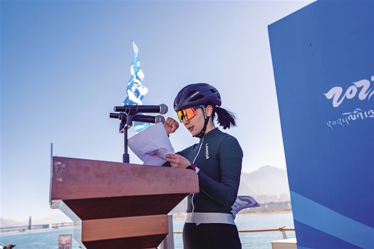 隨著發(fā)令槍響,選手們蹬踏出發(fā),瞬間點(diǎn)燃現(xiàn)場(chǎng)氣氛。經(jīng)過激烈角逐,各個(gè)組別的冠軍相繼產(chǎn)生。女子組冠軍由拉薩老隊(duì)員車隊(duì)的白瑪央吉摘得。“獲得第一名,我感到非常榮幸和開心。這個(gè)賽道設(shè)計(jì)得非常有挑戰(zhàn)性,沿途風(fēng)景如畫。這是我騎車的第五年,感謝主辦方提供了這個(gè)平臺(tái),讓我有機(jī)會(huì)與全國(guó)各地的優(yōu)秀選手同臺(tái)競(jìng)技,同時(shí)也要感謝我的隊(duì)友和教練的支持和鼓勵(lì)?!卑赚斞爰?dòng)地說。