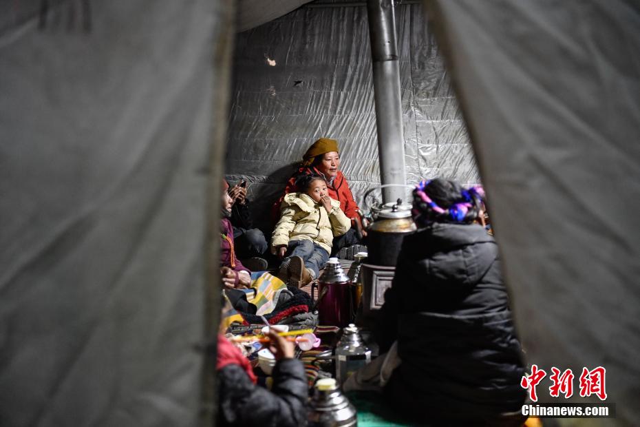 1月7日9時(shí)5分,西藏自治區(qū)日喀則市定日縣措果鄉(xiāng)附近(東經(jīng)87.45度,北緯28.50度)發(fā)生6.8級(jí)地震。日喀則市官方介紹,經(jīng)初步排查,截至當(dāng)日15時(shí),地震共造成95人遇難,130人受傷,房屋損毀正在統(tǒng)計(jì)中。圖為日喀則拉孜縣境內(nèi)的村民在臨時(shí)搭建的帳篷里準(zhǔn)備過(guò)夜。中新社記者 貢嘎來(lái)松 攝