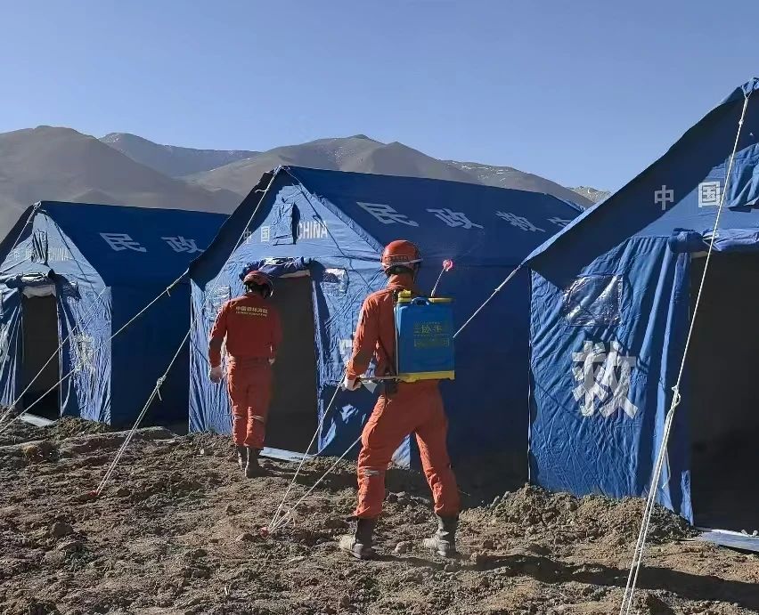安置點(diǎn)人員密集,衛(wèi)生防疫至關(guān)重要,突擊隊(duì)在安置點(diǎn)和帳篷進(jìn)行消殺作業(yè)。隨著夜幕降臨,氣溫驟降,突擊隊(duì)又開始為群眾搬運(yùn)柴火物資、架上火爐。