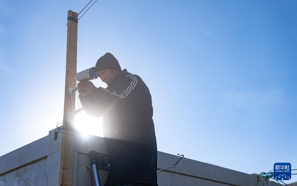 在定日縣長(zhǎng)所鄉(xiāng)古榮村,工作人員在安裝監(jiān)控(1月13日攝)。新華社記者 丁增尼達(dá) 攝