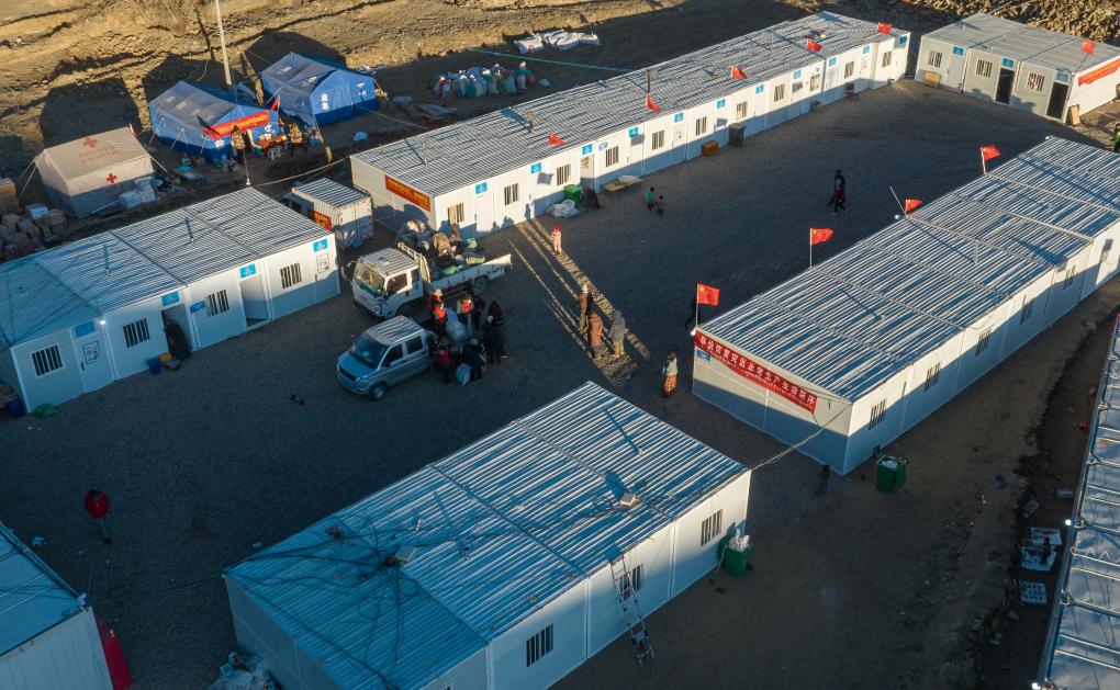 1月13日,在日喀則市定日縣長所鄉(xiāng)古榮村,受災(zāi)群眾正在搬進(jìn)板房。新華社記者 丁增尼達(dá) 攝