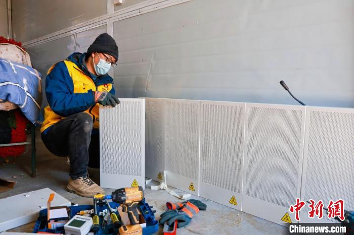 圖為西藏定日地震受災地區(qū)的安置板房內(nèi),工作人員正在安裝取暖器。北京慈福公益基金會 供圖