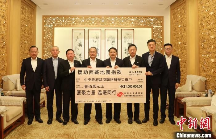 香港中華總商會(huì)捐款100萬(wàn)港元,支援西藏地震災(zāi)區(qū)的救災(zāi)與重建工作。 香港中華總商會(huì)供圖