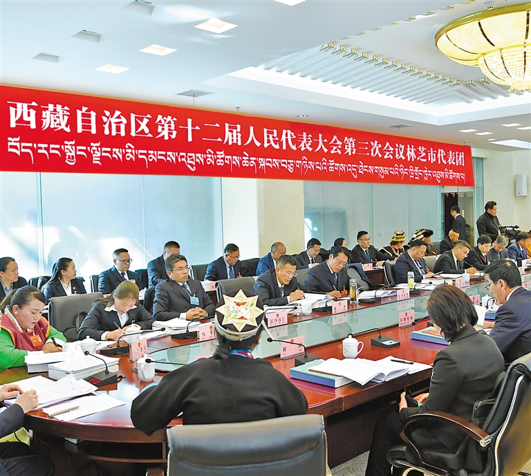 林芝市代表團(tuán)審議政府工作報告。記者 次仁平措 攝