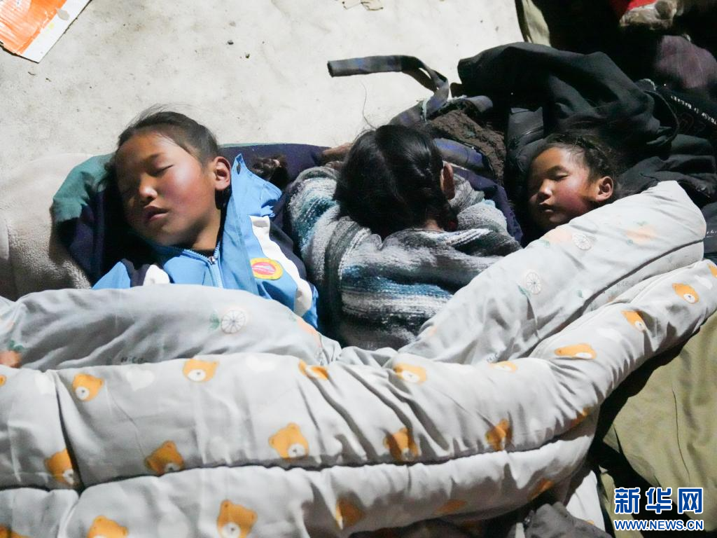 1月8日凌晨,受災群眾在日喀則市定日縣嘎旦村的安置點內休息。 新華社記者 丁汀 攝