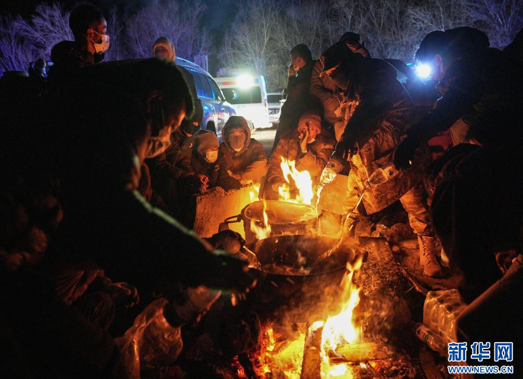 1月7日晚,長所鄉(xiāng)集中安置點的受災群眾在煮水準備泡方便面。新華社記者 晉美多吉 攝